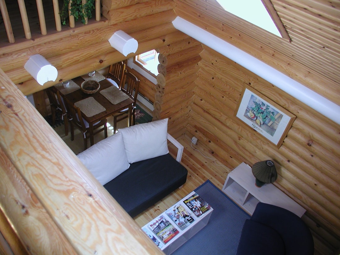ПЛАНИРОВКА ДОМА: . На первом этаже расположились: кухня-гостиная (комната отдыха), моечная с санитарным узлом, сауна: . Второй этаж представляет собой пространство, которое можно использовать по своему усмотрению, например как спальную комнату: .ФОТОЭКСКУРСИЯ ПО ДОМУ: . Общая комната разделенная на 2 части: кухонную и зону отдыха: . . . . . . Лестница на второй этаж: . . . Пространство мансарды можно использовать как зону хранения или как спальную комнату: . . . Благодаря наличию второго света, со второго уровня можно наблюдать, что происходит в зоне отдыха первого этажа: