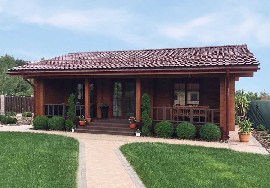 На фото представлен дом из клеёного бруса "Здоровье", который окрашен кроющим антисептиком Тиккурила Винха, цвет 2683 (Вуокса):