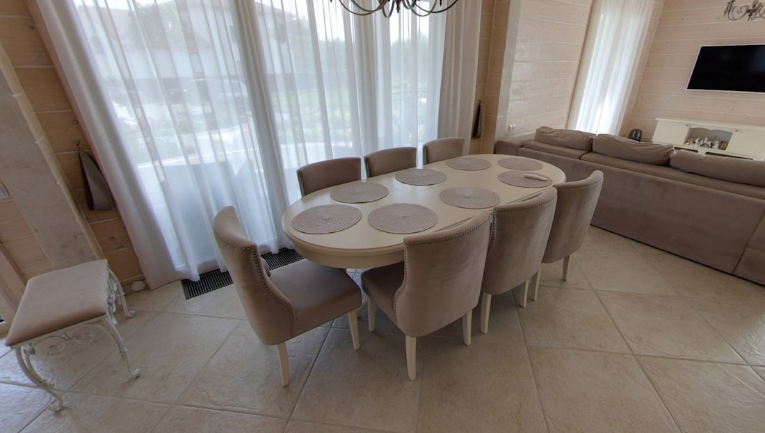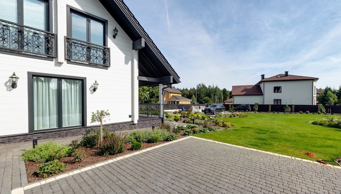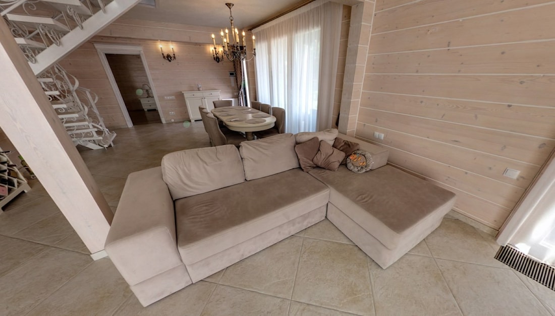 Индивидуальное проектирование домов в Минске и в Беларуси. Специалисты архитектурно-строительной компании Archiline занимаются индивидуальным проектированием на профессиональном уровне. Нужен проект? Жмите!Процесс проектирования деревянного дома начинается с планировок, фасадов, затем расчета объемом материала и предварительной сметы, но это все сухие схемы и цифры. Но важно понимать как будут освещаться помещения, какие базовые цвета взять за основу и т.д. Чтобы наш заказчик мог представить себе как будет ощущаться пространство и как будет выглядеть его будущий дом внутри мы предлагаем услуги 3D визуализации. Благодаря чему, можно увидеть как будут выглядеть помещения готовые под финишную отделку и декор дом.ПЛАНИРОВКА ДОМА: На первом этаже располагаются: тамбур, топочная, просторная кухня-гостиная с выходом на террасу, спальная комната с отдельным гардеробом и санитарным узлом: . На втором: 4 спальные комнаты, совмещенный санитарный узел: . Описание дизайна интерьера частного дома: Дизайн интерьера «Белого дома» - элитный, светлый и воздушный, с очень хорошим содержанием БОЛЬШОЙ ВИДЕО-ОБЗОР ДИЗАЙНА ИНТЕРЬЕРА ДОМА: БОЛЬШОЙ 3D ТУР ПО ДИЗАЙНУ ИНТЕРЬЕРА ДОМА: . . ВНЕШНИЙ ВИД: Большая часть окон в пол, что дает много света и зрительно возносит фасад. Окна в доме деревянные, выполнены сразу с наличниками и откосами: ![]() Благодаря входной группе с крыльцом, террасе и широкому балкону, постройка выглядит очень выразительно. Теплый белый оттенок наружной отделки стен хорошо сочетается с цветовой палитрой ландшафта: ![]() Но вернемся к дому. Внутрь можно попасть двумя способами: через главный вход или террасу: ![]() Войдя в дом через главный вход, мы обнаруживаем себя в тамбуре, где удобно разместились вешалка для одежды и шкаф для хранения вещей: . . . Дверь напротив - вход в котельную. Отопление в доме выполнено посредством газового котла. В котельную можно попасть как из тамбура, так и снаружи, имеется отдельный вход с улицы: ![]() Не задерживаемся и проходим в основную часть дома: ![]() Стены гостиной окрашены составом Тиккурила "Панели-Ясся": лак полуматовый белый, для внутренних поверхностей дома из бруса, потолки отделаны декоративной штукатуркой, а на полу уложена стильная плитка: . . Все это создает атмосферу тепла и уюта в доме: . . Зона гостиной: . . . . Кухонная зона: . . . . Также на первом этаже нашлось место спальне, площадью 17 м2 : . . . В спальне своя гардеробная (не вошла в обзор) и отдельный санузел с ванной: . . . . Неотъемлемой частью интерьера является кованная лестница, по деревянным ступеням которой, мы можем подняться на второй этаж: . . . Из общего пространства второго этажа попадаем на прекрасный балкон, а также в четыре комнаты и общий санитарный узел: . .Оригинальное освещение: . . Проходим в жилые комнаты: . . . Детская комната: . . . . Вторая детская: . . В санузле на втором этаже расположены два больших мансардных окна. Такие окна устанавливают в доме, где угол кровли не более 25 градусов: . . . Если Вас заинтересовали описанные в статье товары и услуги, Вы можете: