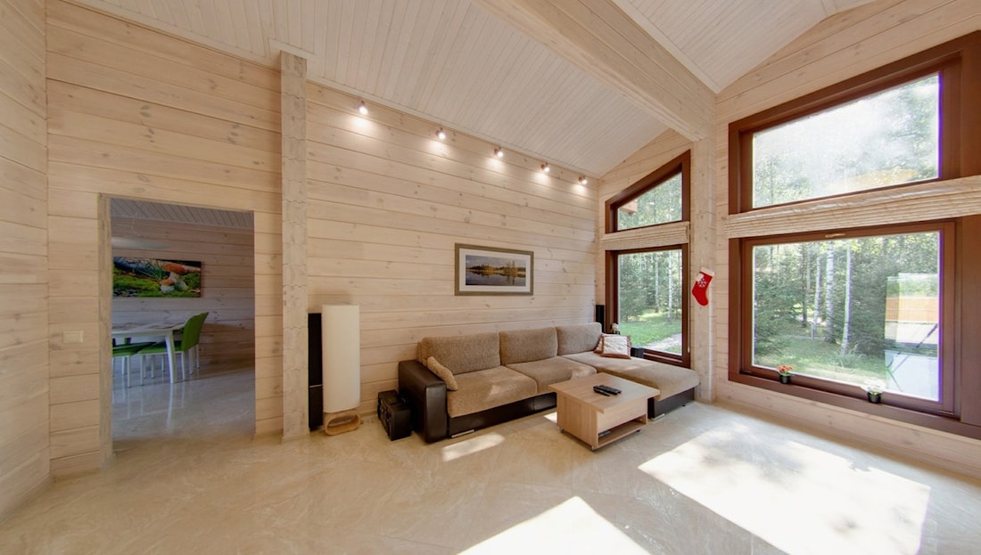 ВИДЕО-ОБЗОР ДЕРЕВЯННОГО ДОМА "МИРАЖ": Натуральный деревянный дом из клееного бруса «Мираж» - компактный дом с 2 спальнями, гостиной и отдельной кухней с выходом на террасу. Это идеальное решение для тех, кто ищет небольшой дом для постоянного проживания.