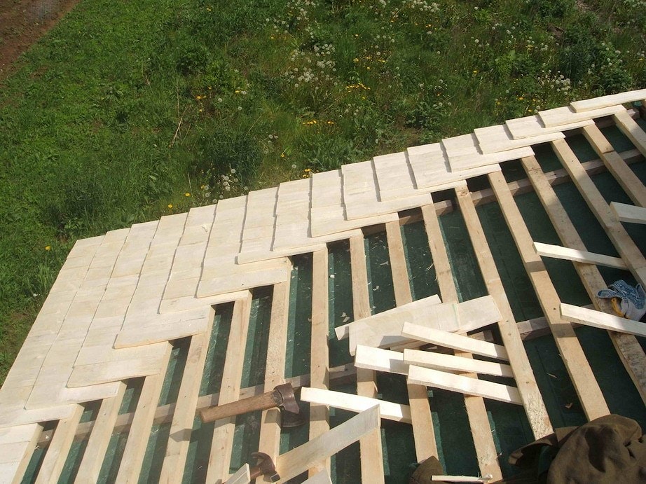 Осиновый гонт благодаря своим характерным свойствам не подвержен плесени, не зарастаем мхом, не боится влажности в виде осадков. Предложенная структура дощечек гонта создает продуваемую горизонтально поверхность. Цвет осины очень красивый и постоянно меняется в зависимости от атмосферных условий, то сероватый, то рыжеватый, а то и светлеет создавая неповторимые живые цвета кровельного покрытия. Деревянная черепица - гонт изготавливается путем строгания осиновых досок на четырехстороннем станке. Деревянную черепицу кладут в три слоя. Толщина слоя составляет 90-120 мм, под ним предусматривается вентиляционный зазор. Образуется структура, похожая на чешуйки шишки хвойного дерева. Во время дождя или повышенной влажности дерево набухает, и поверхность дранки уплотняется, предотвращая проникновение влаги. Структура поверхности с ложбинками в центре является наиболее рациональной, обеспечивая максимальную защиту кровли от осадков. Гонт придает особый колорит современным рекреационным объектам, отелям, резиденциям, музеям и историческим постройкам. Особенно привлекательно выглядят накрытые гонтом малые архитектурные формы: беседки, гриль-домики, павильоны. Яркую индивидуальность приобретает дом, накрытый деревянным гонтом. Деревянная кровля имеет ряд преимуществ: долговечность, экологичность, воздухопроницаемость, шумопоглощение, отсутствие конденсата, отсутствие статического напряжения, эксклюзивность, неповторимость. Например, дом Эмира Кустурицы в Сербии покрыт именно деревянной черепицей. Так-же рекомендуем накрывать деревянные дома керамической черепицей. При нажатии на картинку ниже, Вы увидите варианты цветов черепицы (мы первые поставщики) и примеры накрытых домов (собственные монтажные бригады)