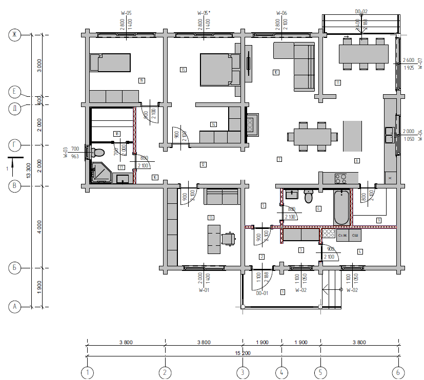В жилой части предусмотрены: